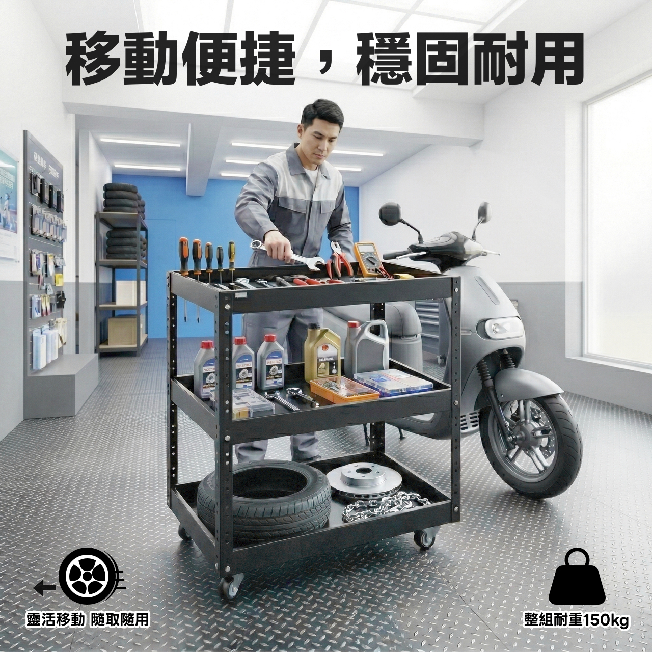 【家用倉儲】客戶自行至振宇五金購買角鋼用輪改裝貨架